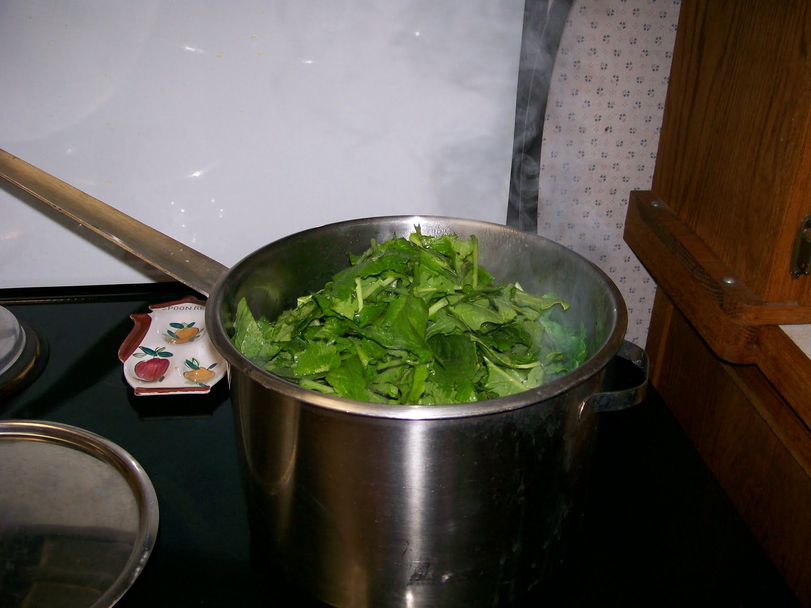 Two lovely fall colors, orange and green; a little mixture of what's left of warm weather and the coming of cold weather. Today I'm freezing turnip greens for the winter meals; picking, washing, cutting them up and cooking,